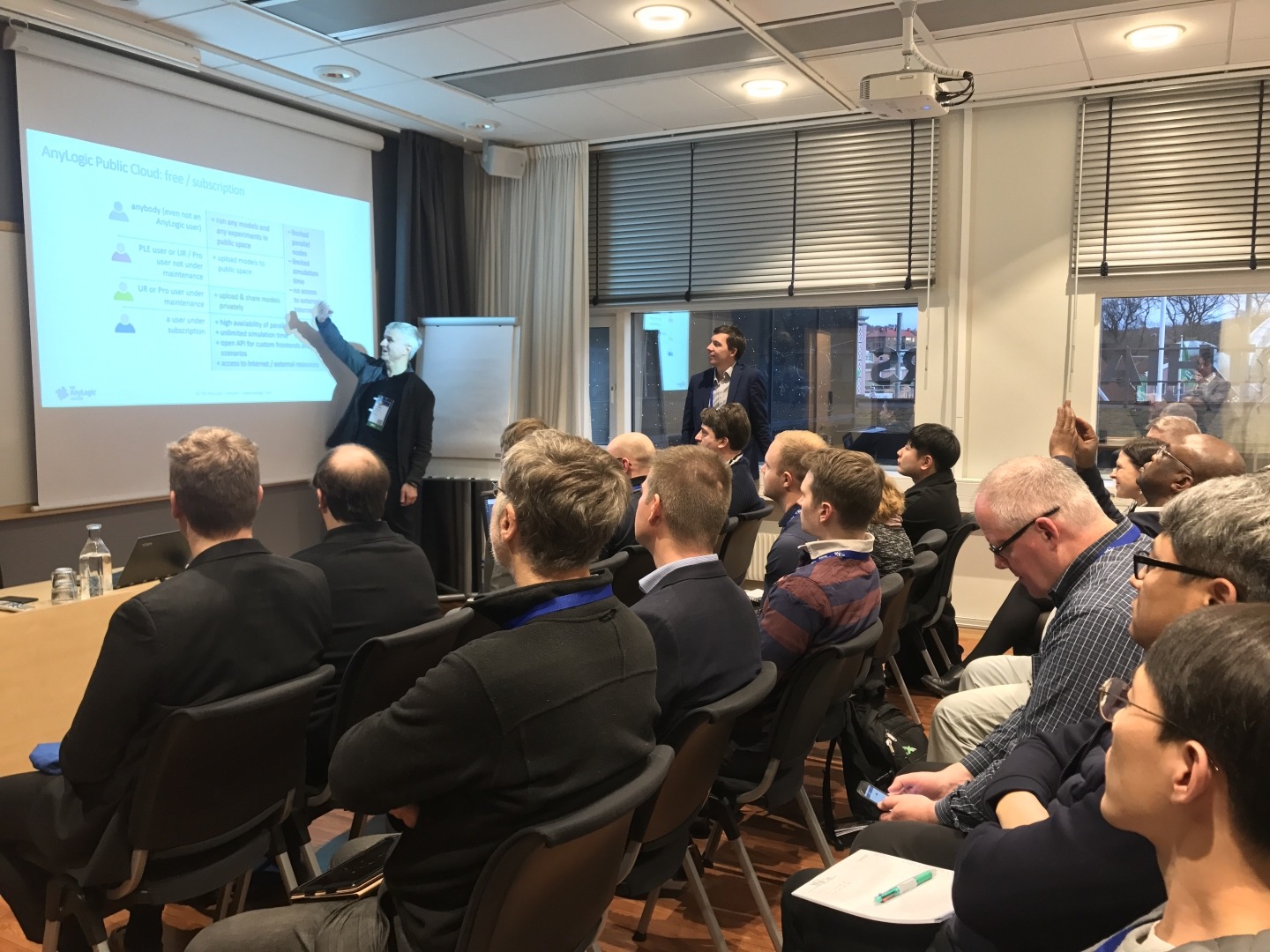 Monday evening saw the attendees gather at the Svenska Mässan for the general reception. It was an occasion with a special significance for AnyLogic, as it marked 18 years since its first release at the Winter Simulation Conference in 2000. Andrei Borshchev, AnyLogic CEO, took to the stage to mark the occasion and commence the evening.